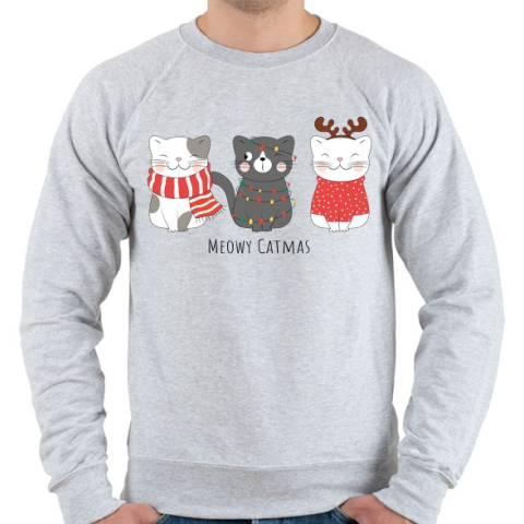 1 kép PRINTFASHION Meowy Catmas - Férfi pulóver - Sport szürke