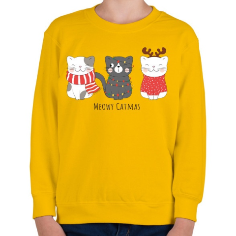 1 kép PRINTFASHION Meowy Catmas - Gyerek pulóver - Sárga