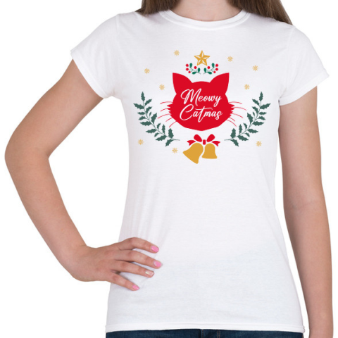 1 kép PRINTFASHION Meowy Catmas - Női póló - Fehér