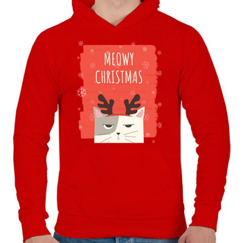 1 kép PRINTFASHION MEOWY CHRISTMAS - Férfi kapucnis pulóver - Piros