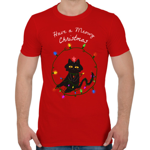 1 kép PRINTFASHION MEOWY CHRISTMAS - Férfi póló - Piros