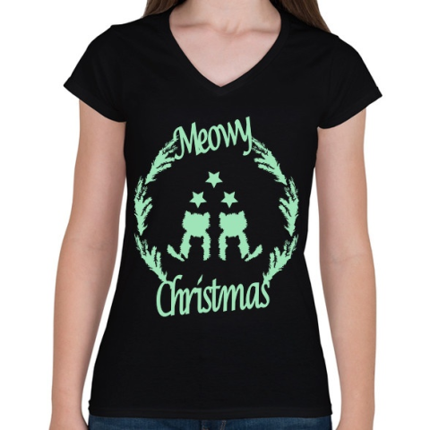 1 kép PRINTFASHION meowy green - Női V-nyakú póló - Fekete