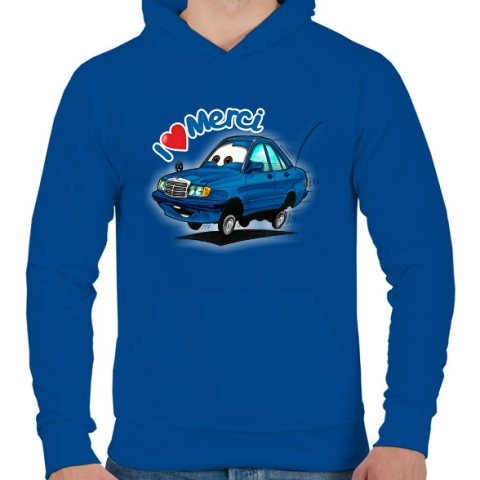 1 kép PRINTFASHION merci - Férfi kapucnis pulóver - Királykék