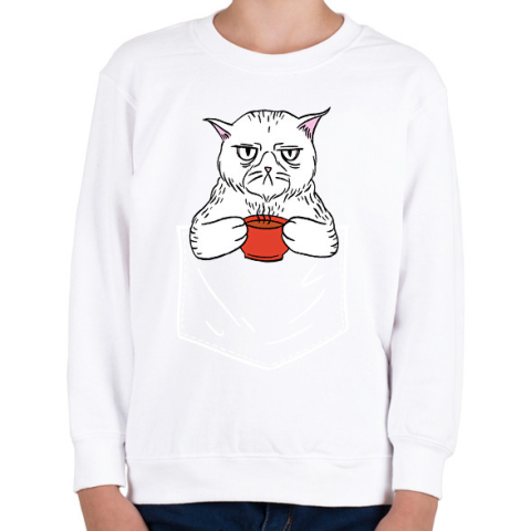 1 kép PRINTFASHION Mérges cica kávéval - Gyerek pulóver - Fehér
