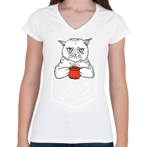 1 kép PRINTFASHION Mérges cica kávéval - Női V-nyakú póló - Fehér