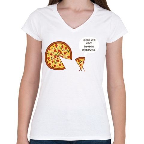 1 kép PRINTFASHION Mérges pizza - Női V-nyakú póló - Fehér