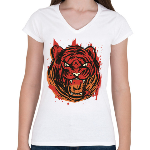 1 kép PRINTFASHION Mérges tigris - Női V-nyakú póló - Fehér