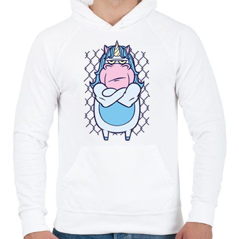1 kép PRINTFASHION Mérges unikornis - Férfi kapucnis pulóver - Fehér
