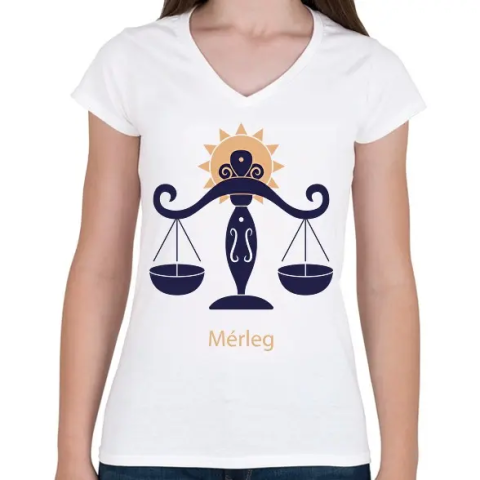 1 kép PRINTFASHION Mérleg minta - Női V-nyakú póló - Fehér