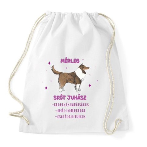 1 kép PRINTFASHION Mérleg - Skót juhász - Sportzsák, Tornazsák - Fehér