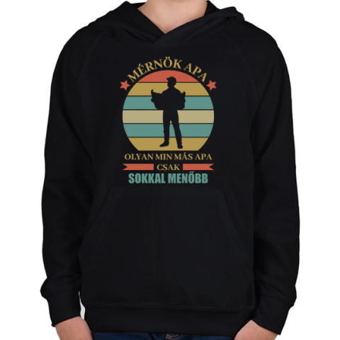 1 kép PRINTFASHION Mérnök apa - Gyerek kapucnis pulóver - Fekete