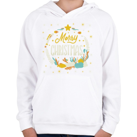 1 kép PRINTFASHION Merry Christmas - Boldog Karácsonyt - Gyerek kapucnis pulóver - Fehér