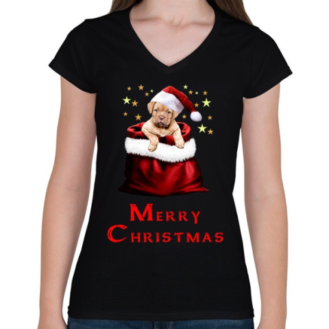 1 kép PRINTFASHION Merry Christmas - Női V-nyakú póló - Fekete