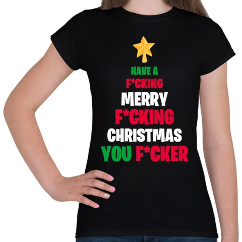 1 kép PRINTFASHION Merry Fcking Christmas Tree - Női póló - Fekete