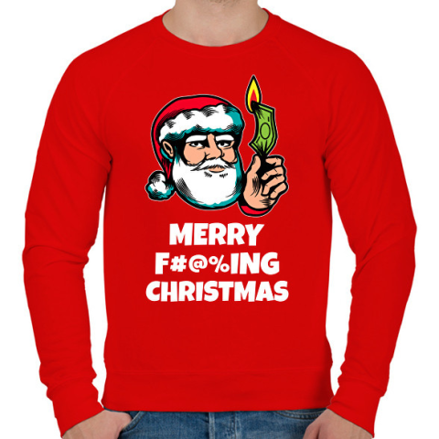 1 kép PRINTFASHION MERRY FUCKING CHRISTMAS 4 - Férfi pulóver - Piros