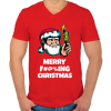 1 kép PRINTFASHION MERRY FUCKING CHRISTMAS 4 - Férfi V-nyakú póló - Piros