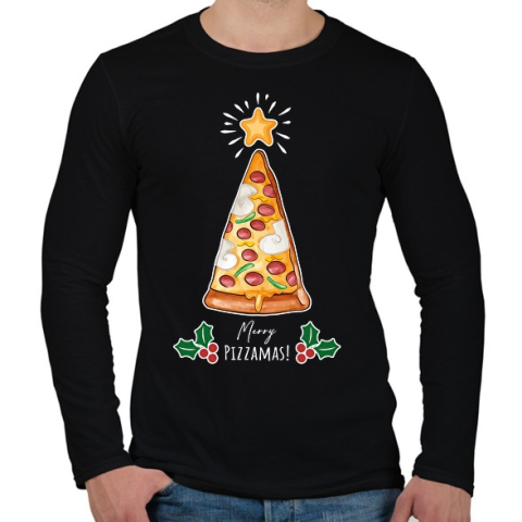 1 kép PRINTFASHION Merry Pizzamas fehér - Férfi hosszú ujjú póló - Fekete
