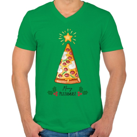 1 kép PRINTFASHION Merry Pizzamas - Férfi V-nyakú póló - Zöld