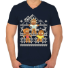 1 kép PRINTFASHION Merry Rickmas mézeskalács - Férfi V-nyakú póló - Sötétkék