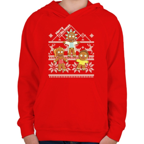 1 kép PRINTFASHION Merry Rickmas mézeskalács - Gyerek kapucnis pulóver - Piros