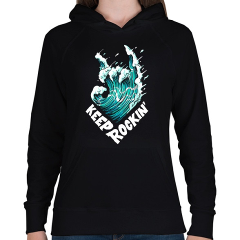 1 kép PRINTFASHION Metál hullám - Női kapucnis pulóver - Fekete