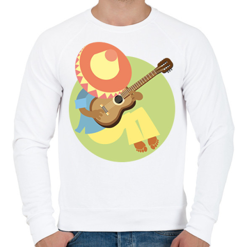 1 kép PRINTFASHION Mexikó-sombrero-gitár - Férfi pulóver - Fehér