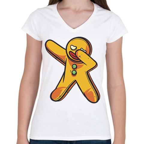 1 kép PRINTFASHION Mézeskalács dab - Női V-nyakú póló - Fehér
