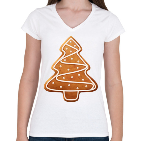 1 kép PRINTFASHION Mézeskalács fenyő - Női V-nyakú póló - Fehér