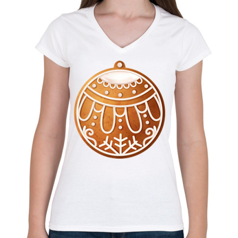 1 kép PRINTFASHION Mézeskalács gömb - Női V-nyakú póló - Fehér