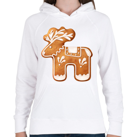 1 kép PRINTFASHION Mézeskalács szarvas - Női kapucnis pulóver - Fehér