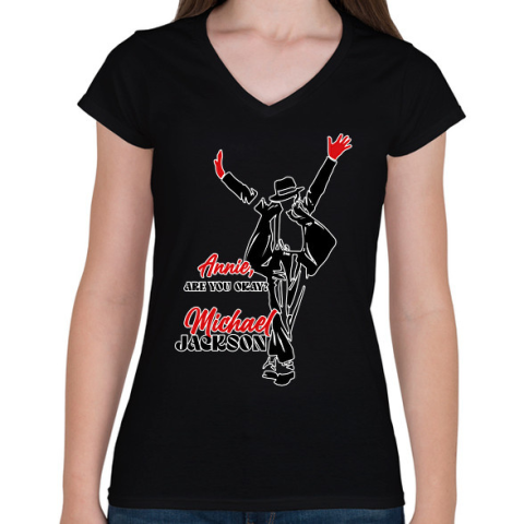 1 kép PRINTFASHION Michael Jackson - Annie - Női V-nyakú póló - Fekete