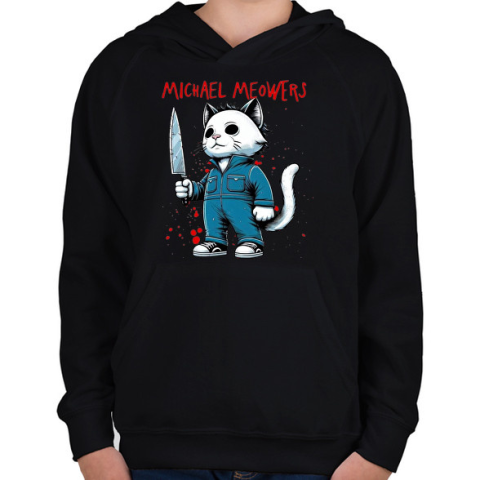 1 kép PRINTFASHION Michael MEOWers - Gyerek kapucnis pulóver - Fekete