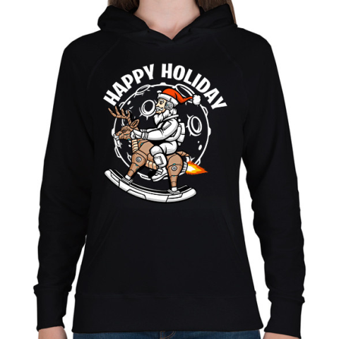 1 kép PRINTFASHION Mikulás az űrben - Női kapucnis pulóver - Fekete
