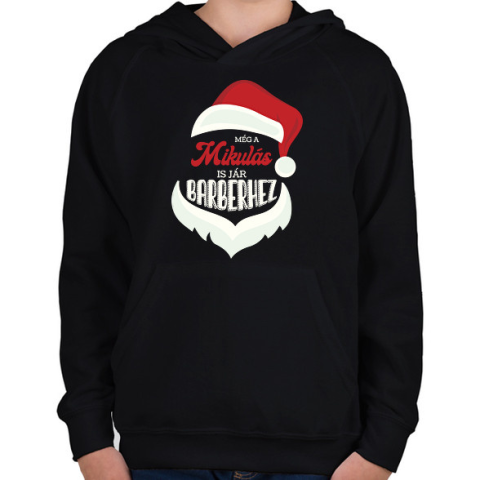 1 kép PRINTFASHION Mikulás barber - Gyerek kapucnis pulóver - Fekete