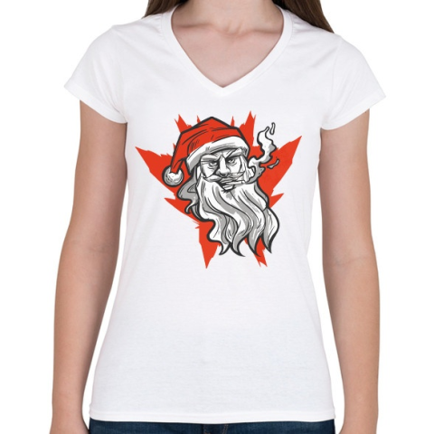 1 kép PRINTFASHION Mikulás cigivel - Női V-nyakú póló - Fehér