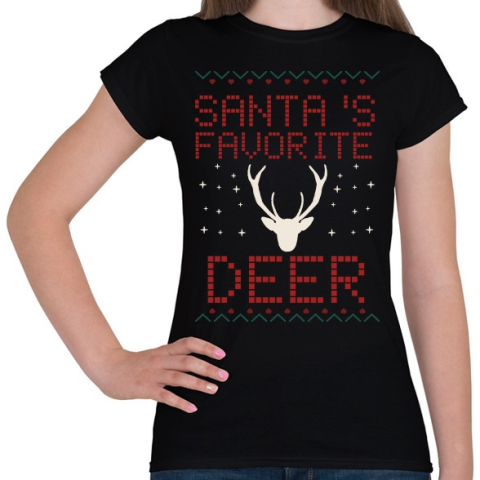 1 kép PRINTFASHION Mikulás kedvenc szarvasa - Női póló - Fekete