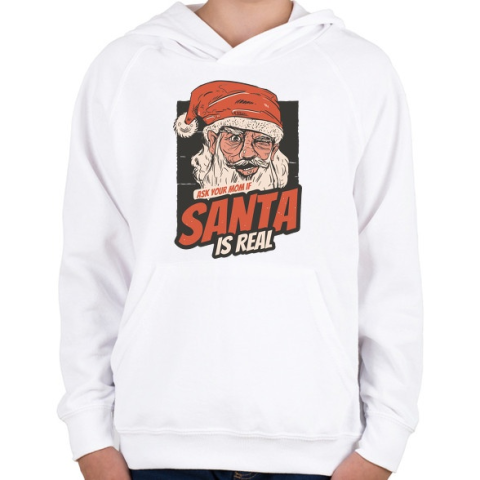 1 kép PRINTFASHION Mikulás létezik - kérdezd meg anyát - Gyerek kapucnis pulóver - Fehér