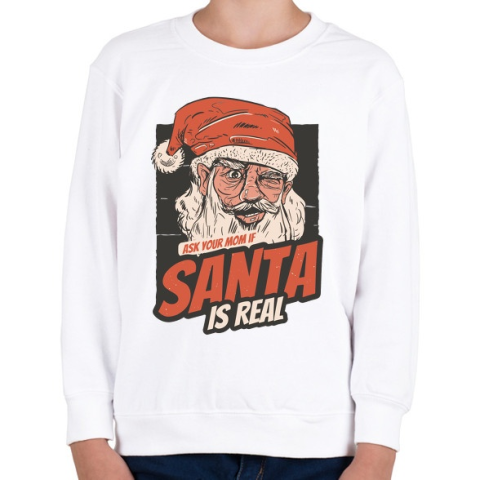 1 kép PRINTFASHION Mikulás létezik - kérdezd meg anyát - Gyerek pulóver - Fehér