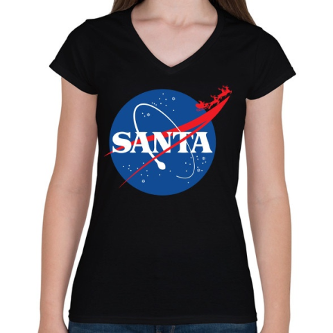 1 kép PRINTFASHION Mikulás NASA - Női V-nyakú póló - Fekete