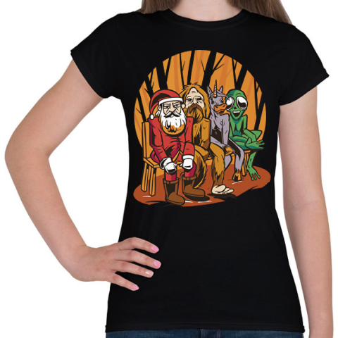 1 kép PRINTFASHION Mikulás, Yeti, unikornis és alien - Női póló - Fekete