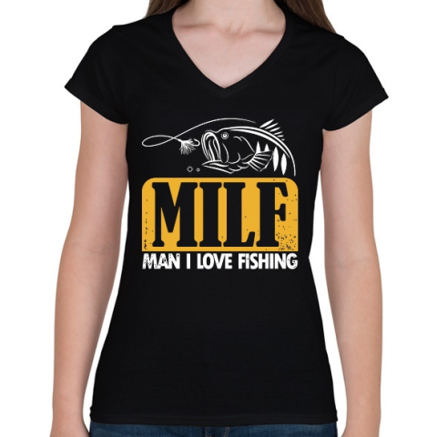 1 kép PRINTFASHION MILF pecás - Női V-nyakú póló - Fekete