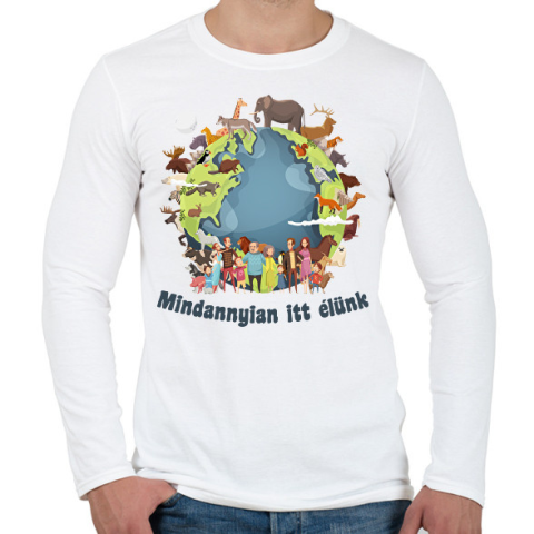 1 kép PRINTFASHION Mindannyian itt élünk - Férfi hosszú ujjú póló - Fehér