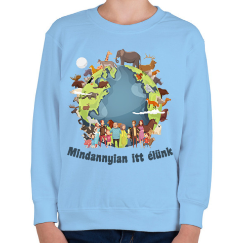 1 kép PRINTFASHION Mindannyian itt élünk - Gyerek pulóver - Világoskék