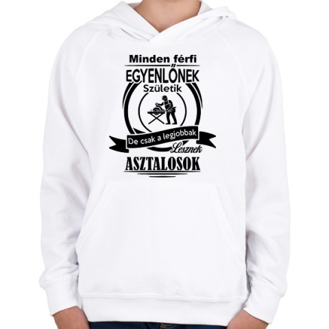 1 kép PRINTFASHION minden férfi asztalosnak születik - Gyerek kapucnis pulóver - Fehér