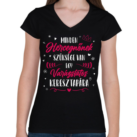 1 kép PRINTFASHION Minden Hercegnőnek - Keresztapa - Női V-nyakú póló - Fekete