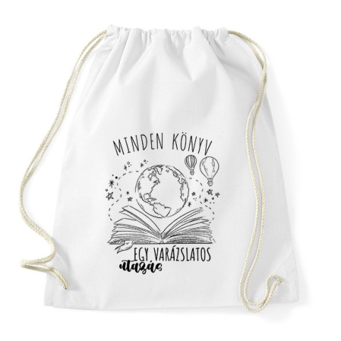 1 kép PRINTFASHION Minden könyv - egy varázslatos utazás - Sportzsák, Tornazsák - Fehér