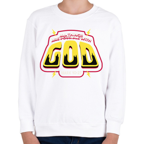 1 kép PRINTFASHION Minden lehetséges Istennel - Gyerek pulóver - Fehér