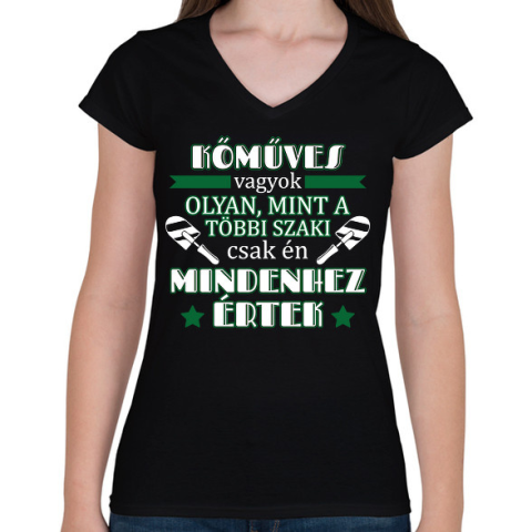 1 kép PRINTFASHION Mindenhez értek - Női V-nyakú póló - Fekete