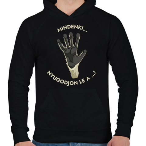 1 kép PRINTFASHION Mindenki nyugodjon le a ... - Vicces feliratos minta - Férfi kapucnis pulóver - Fekete