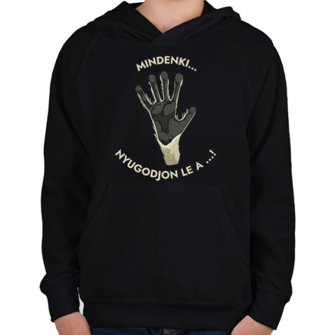 1 kép PRINTFASHION Mindenki nyugodjon le a ... - Vicces feliratos minta - Gyerek kapucnis pulóver - Fekete